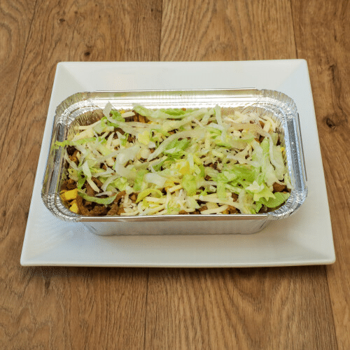 Huisgemaakt pizzadeeg, tomatensaus, kaas, gehakt, uien, sambal en verse knoflook